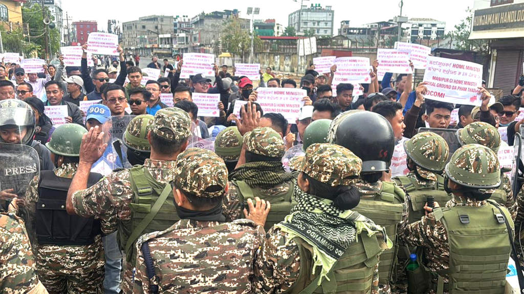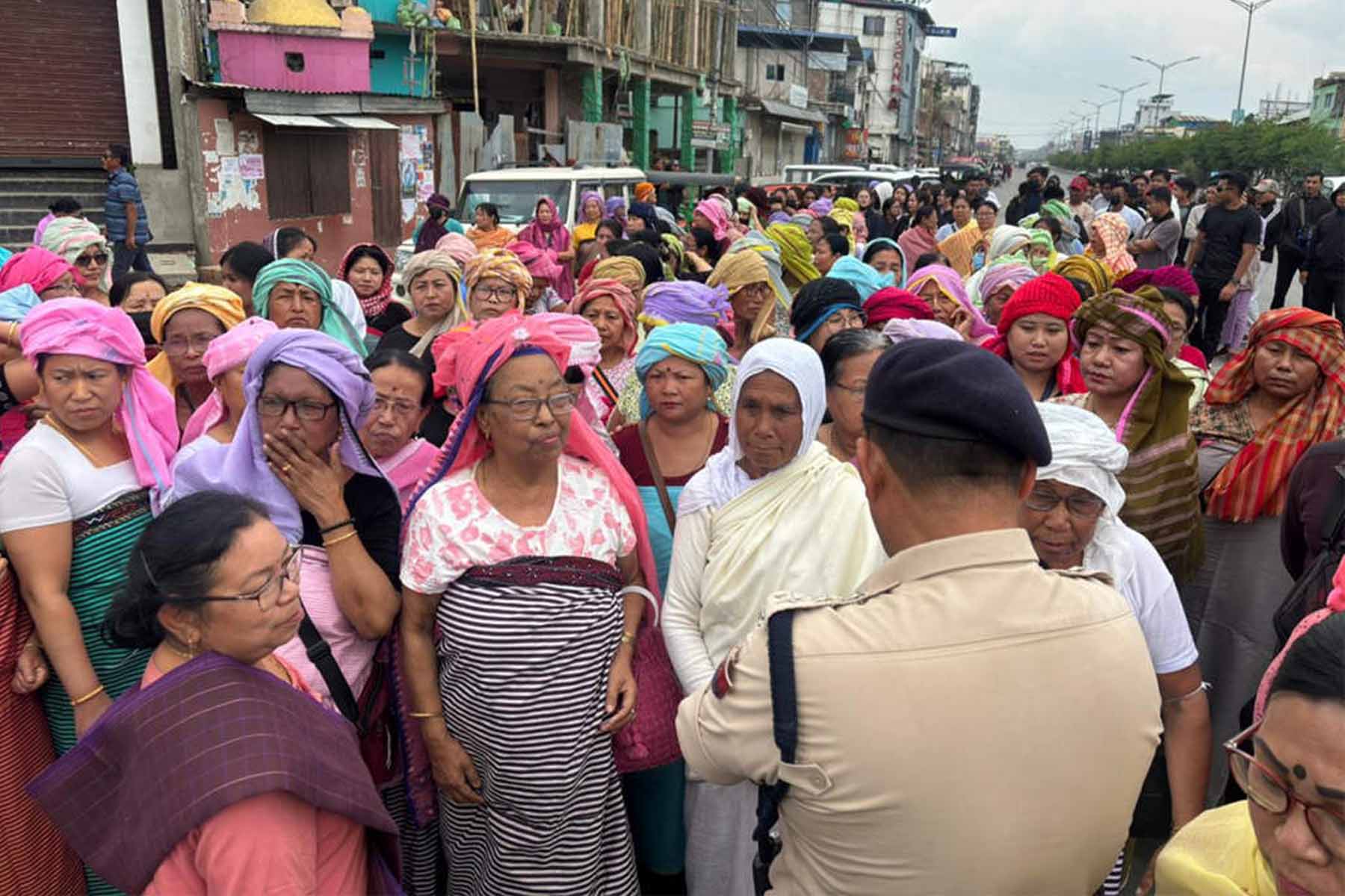 Imphal, April 9 (Wayel Kati) — Tension gripped several parts of the Imphal Valley on Friday as angry residents defied curfew restrictions and poured onto the streets, leading to widespread protests, shutdown of government offices, and dramatic scenes of unrest.